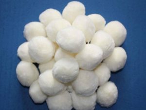 改性纖維球通過特殊配方,可以改善其親水性。變性纖維絲遇水后,會聚集在大桶分子表面,其表面形成一層水膜,在油、纖維球之間起良好的隔離作用。纖維球面上的油污物經(jīng)過反沖清洗,可改善纖維球的再生性能。將改性纖維球過濾后,濾層孔隙率越來越小,孔隙分布呈上大下小的狀態(tài),能加強對過濾材料的阻截作用,使含油污水中懸浮物—懸浮物的去除。